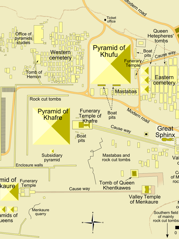 Quite literally building on Sneferu’s success, his son, Khufu, and his descendents, Khafre and Menkaura went on to generate some of Egypt’s most iconic architecture: the Pyramids of Giza.